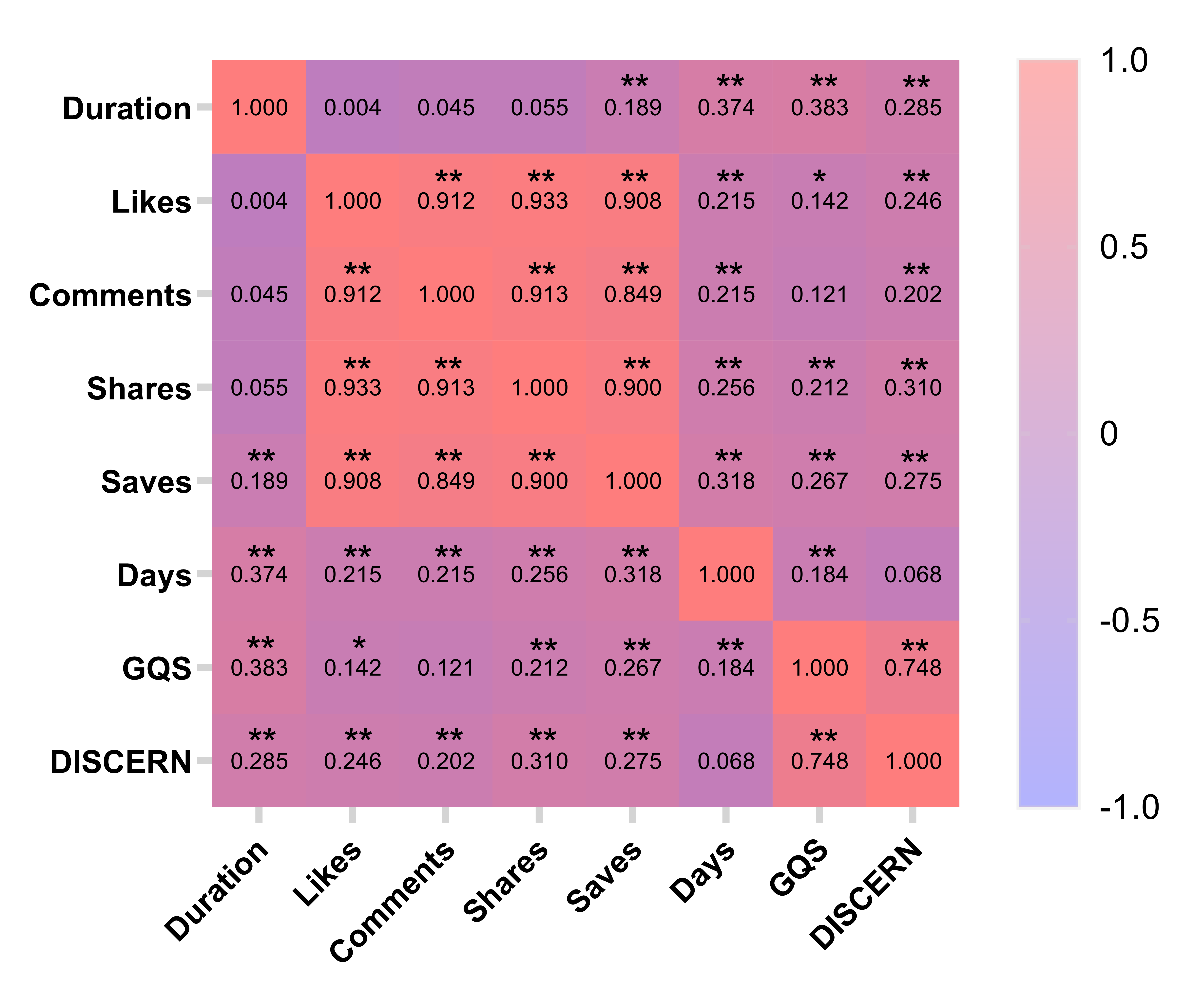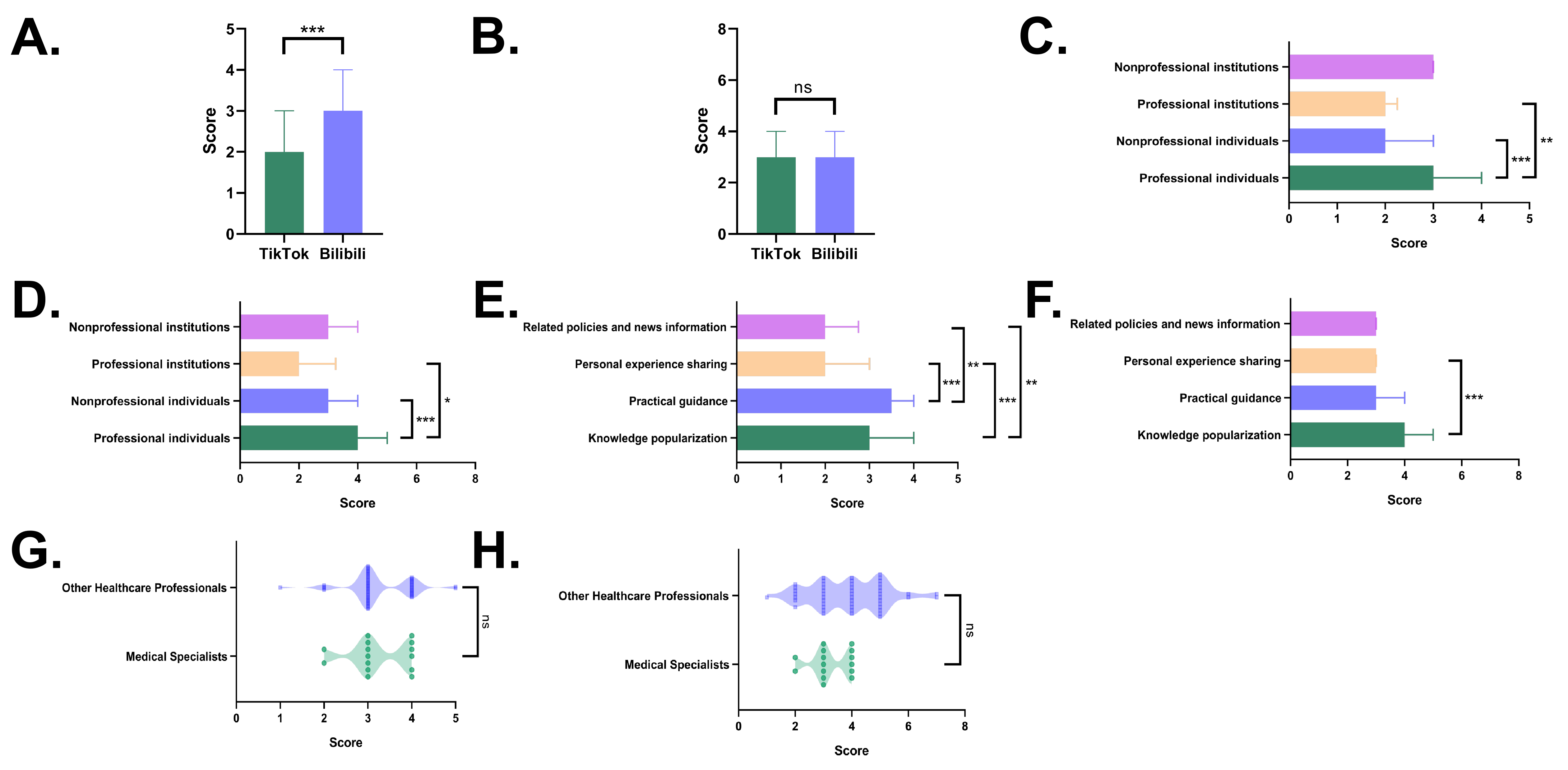 B. Comparison of DISCERN scores between TikTok and Bilibili videos;